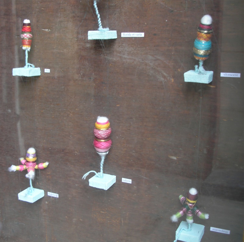 Ich zeigte in der Schaufenster- und Setzkasteninstallation „Vivat, crescat, floreat!“/„Es möge leben, wachsen und blühen!“ von 2007 eine subjektive Auswahl reizvoller Tamponobjekte.