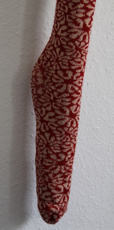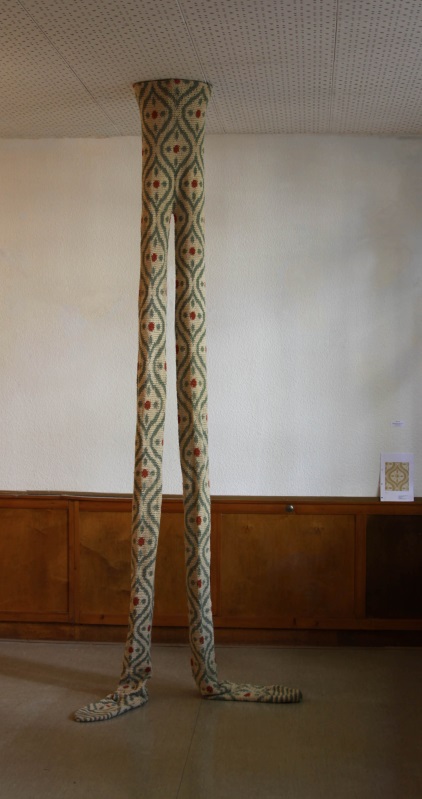 Spielerisch, auch ironisch möchte ich mit der überdimensionalen Strumpfhosengröße auf mein Projekt „ Die Wand braucht ein Kleid!“ oder auf das künstlerische Projekt bezogen „Das Bein braucht ein Kleid!“ aufmerksam machen.